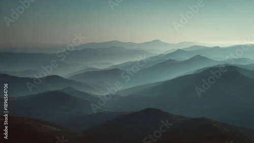 © hkjdesign, Obraz premium Layered Mountain Range in Mist