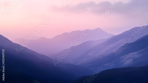 Obraz premium Layered mountain range silhouette at beautiful dusk time setting