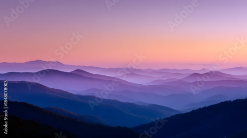 © Jojo*, Fototapeta premium Layered mountain ridges fade into a pastel-colored twilight sky
