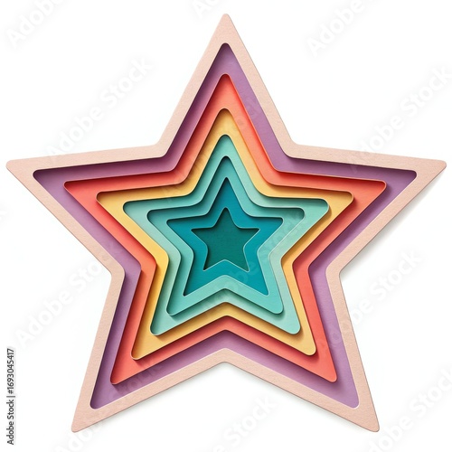 Fototapeta premium Layered papercut illustration of multicolor star shape in concentric design