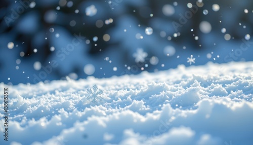 © CRISPIFLY, Fototapeta premium Layered perspective of snowflakes delicately resting on a smooth surface.