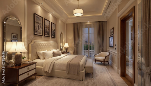 © Elegant Design & Art, Fototapeta premium Layers of bright and warm neutrals—with pops of saturated colors—are perfect for traditional bedrooms