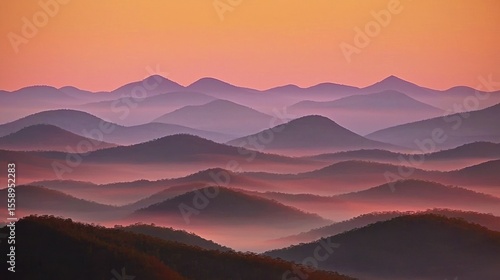 © ida, Obraz premium Layers of mountains create a beautiful landscape at sunset or sunrise