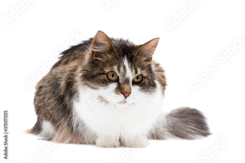 Obraz premium Laying cat isolated over white background