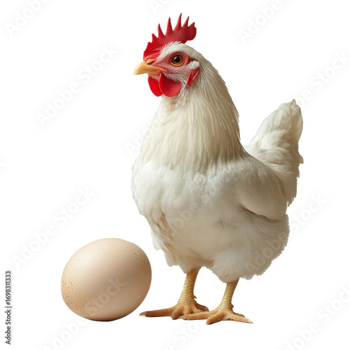 © Photolife , Fototapeta premium Laying hen with egg looking sideways, isolate on transparent white background