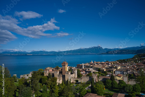 © Berg, Fototapeta premium Lazise Lake Garda Italy. Panorama of the historic town of Lazise. Top view of the historic part of the city Lazise Castle on the coastline of Lake Garda. Aerial view of the Scaliger Castle of Lazise.