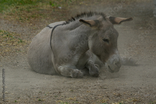 © evolutionnow, Fototapeta premium lazy grey Donkey lying on the ground