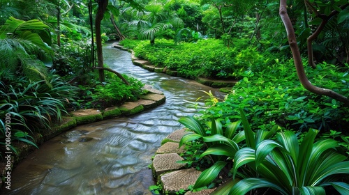 © Crck, Obraz premium Lazy river winding through lush greenery