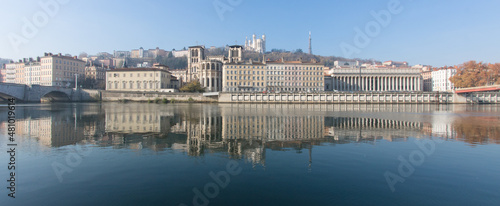Naklejka premium le bord de Saône et le quartier du vieux Lyon sous le soleil