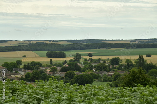 Fototapeta premium Le bourg de Champagne dans la vallée de la Lizonne sous un ciel assombrissant...