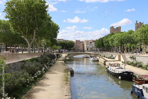 Naklejka premium Le canal de la Robine dans la ville, ville de Narbonne, département de...