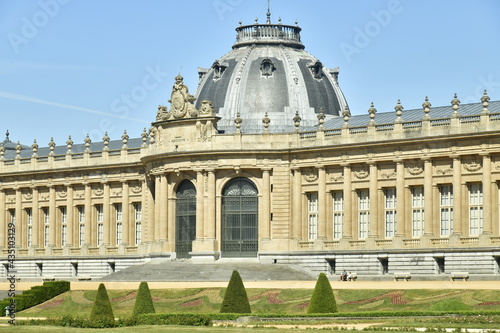 © Photocolorsteph, Fototapeta premium Le Jardin Français avec ses allées ,pelouses et haies parfois en cone devant l'imposant Musée National de l'Afrique Centrale au parc de Tervuren à l'est de Bruxelles