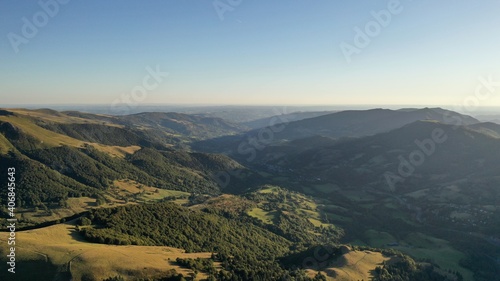 © Lotharingia, Fototapeta premium Le Lioran et le massif du puy mary dans le cantal en auvergne (survol)