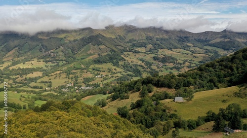 © Lotharingia, Fototapeta premium Le Lioran et le massif du puy mary dans le cantal en auvergne (survol)