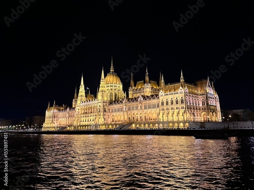 © Laura, Fototapeta premium Le Parlement à Budapest de nuit, depuis le Danube