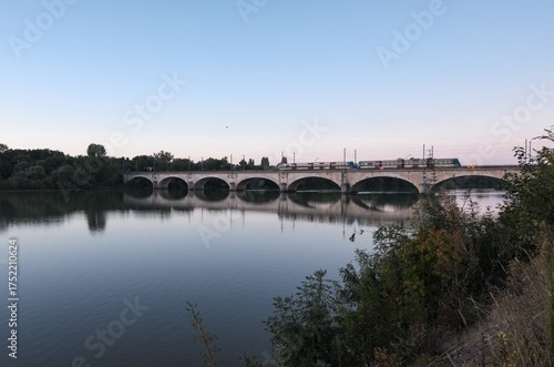 © skerdreux, Fototapeta premium Le Pont ferroviaire de la Vendée à Nantes : Reflet Silencieux