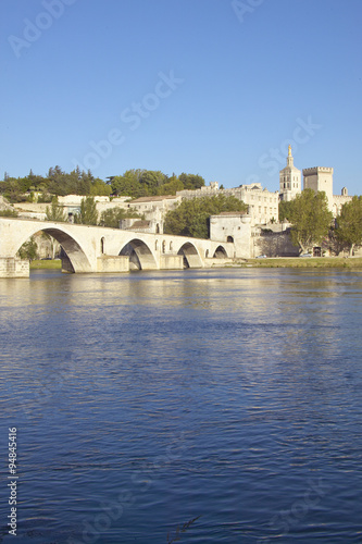 Naklejka premium Le Pont St. Benezet and Palace of the Popes and Rhone River, Avignon, France