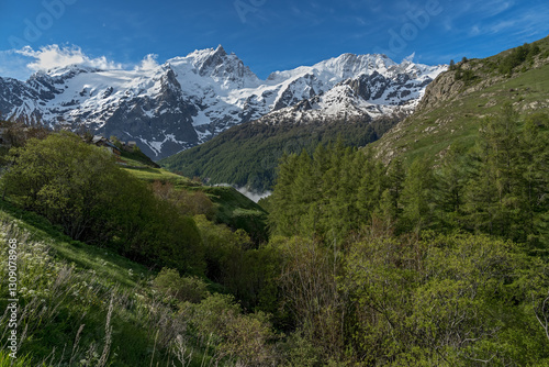 Fototapeta premium Le printemps au pays de la Meije , vue depuis le hameau des Terrasses à la...