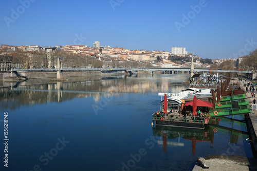 © Alexis BORG, Fototapeta premium Le Rhône dominé par la Colline de la Croix Rousse, vus depuis le Pont Lafayette