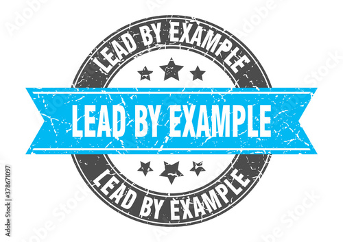© Aquir, Obraz premium lead by example round stamp with ribbon. label sign