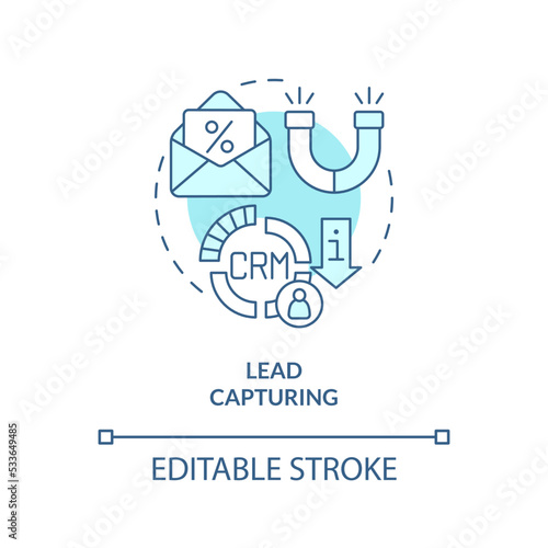 © IMG visuals icons, Fototapeta premium Lead capture turquoise concept icon. Data collection. Contacts management process abstract idea thin line illustration. Isolated outline drawing. Editable stroke. Arial, Myriad Pro-Bold fonts used