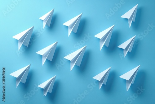 Fototapeta premium Leadership Concept with Red Paper Plane Leading Among White Planes on Blue...