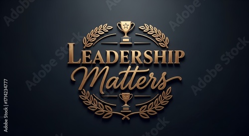 Fototapeta premium Leadership Matters gold serif typography with laurel and trophy accents