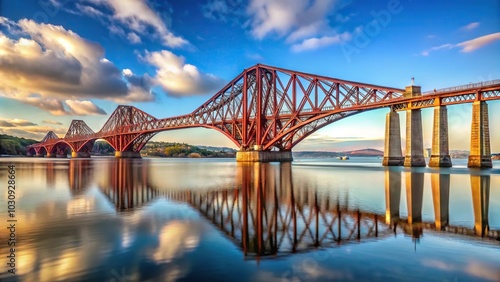 © beng, Obraz premium Leading Lines of Forth Road Bridge and Forth Rail Bridge in Edinburgh, Scotland