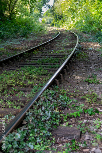 © Anders93, Obraz premium Leading lines with train tracks heading into a forest