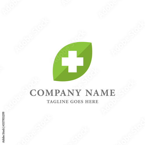 Fototapeta premium Leaf and Medical Cross Company Logo Design Template.