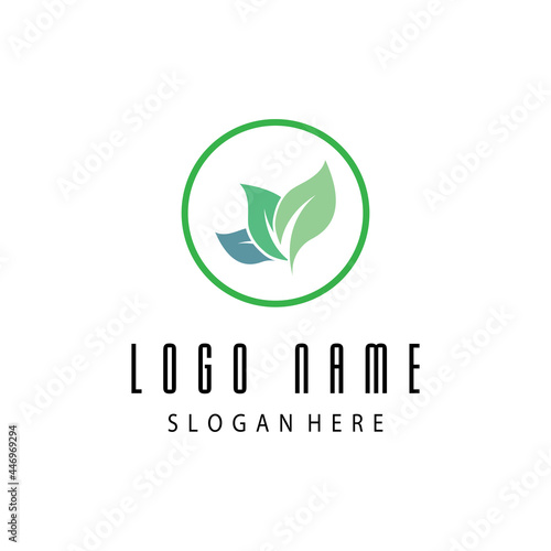 Obraz premium Leaf and Shutter Lens Aperture for Nature Photographer logo design inspiration