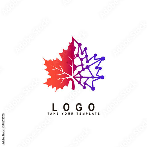 Obraz premium leaf and technology logo design template