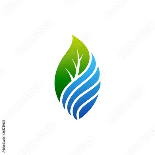 Obraz premium Leaf and water logo concept, simple flat style in green and blue color