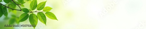 Fototapeta premium Leaf clusters in soft focus on white background, clean, light