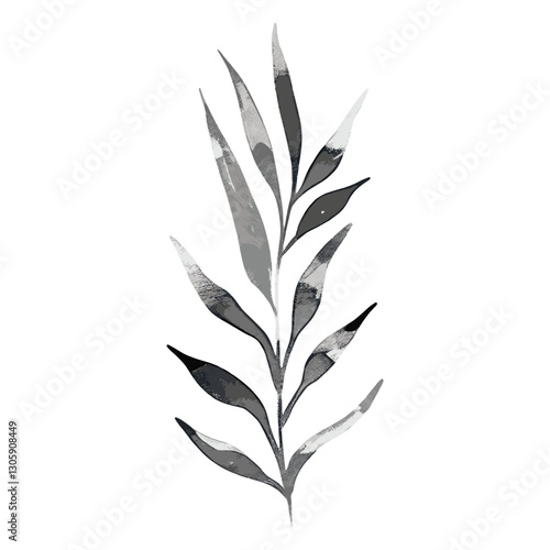 Fototapeta premium Leaf Fern leaves shape brush stroke black white art vector