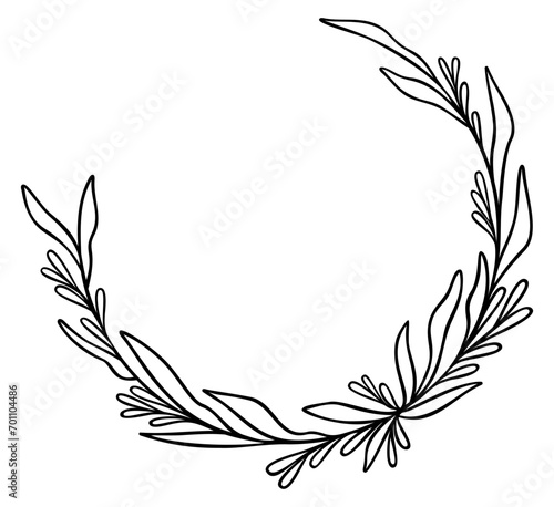 © Rachel, Naklejka premium Leaf Line Art Wreath Border