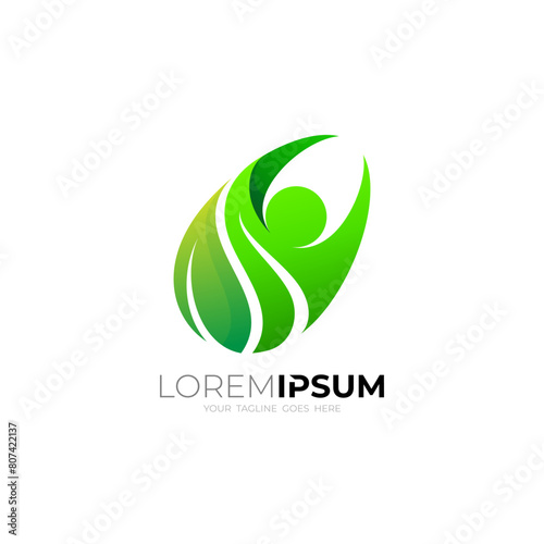 Fototapeta premium Leaf logo and people design combination, green color