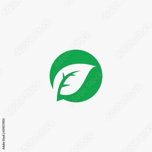 Obraz premium Leaf logo design. Green leaf circle sign symbol. Natural bio illustration....