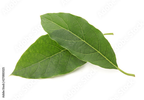 © zcy, Fototapeta premium leaf of avocado tree isolated on white background