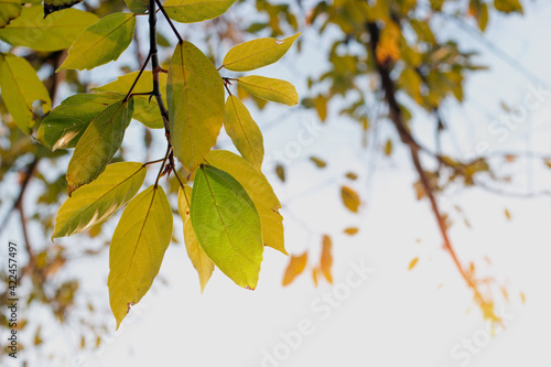 Obraz premium leaf on tree with sunrise for nature
