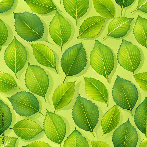 © nauman, Obraz premium leaf pattern on green backdrop fresh springtime