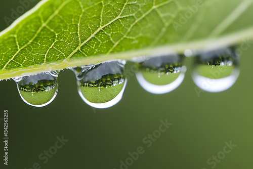 Fototapeta premium Leaf's Dewdrop Reflections: Nature's Art