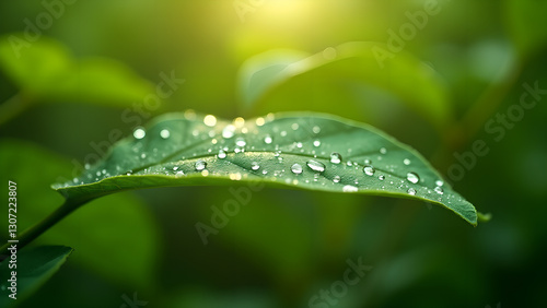 Fototapeta premium Leaf's Morning Dew, A Refreshing Natural Beauty