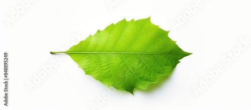Fototapeta premium Leaf shaped recycling mark on a white background with copy space image