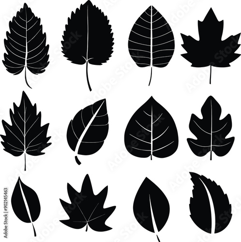 © Smart Bot Gallery, Fototapeta premium Leaf silhouette black and white vector
