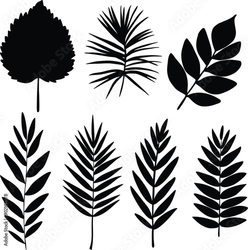 © Smart Bot Gallery, Fototapeta premium Leaf silhouette black and white vector