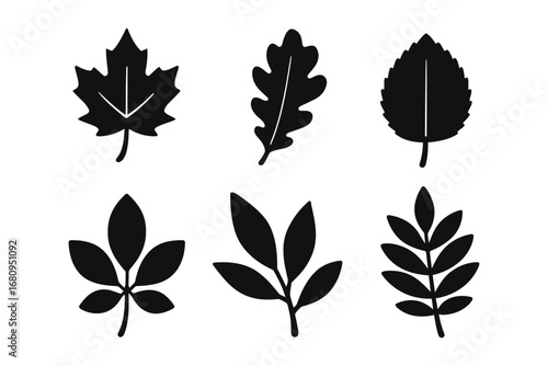 Fototapeta premium leaf silhouettes icon set – maple, oak, birch, compound branches