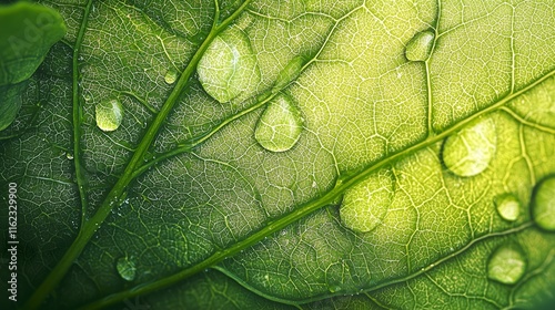 © lasalus, Fototapeta premium Leaf texture with water drops