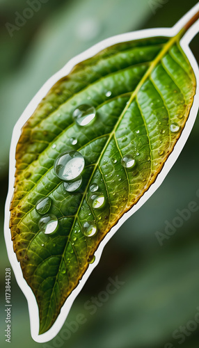 Fototapeta premium leaf with rain droplets - Recovery earth concept, sticker style, with white...