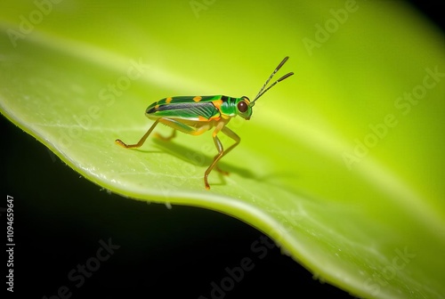 Fototapeta premium Leafhopper's Leaf Dance A tiny leafhopper with vibrant colors pe